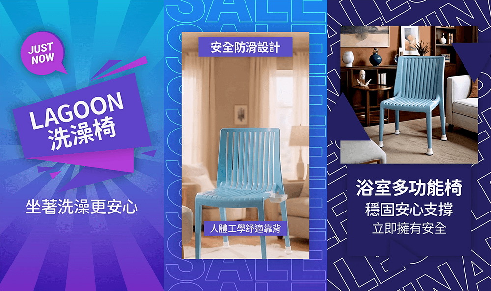 強調AI運鏡的靈活性,透過快速切換「促銷資訊 → 產品視覺 → 多角度特寫 → 情境大景」,打造強節奏感。讓消費者快速接收到促購訊息,也能在短時間內建立產品印象與購買欲望。